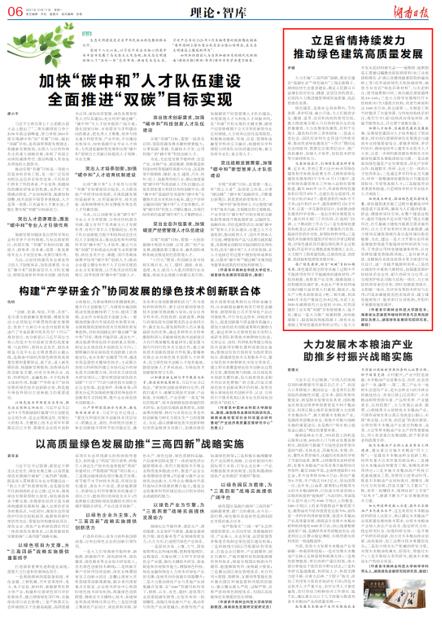 文章契合“湖南省生态建筑环境材料研发与应用创新团队”最新研究成果,指出大力实施“三高四新”战略,要求在建设“低碳社会”、“绿色城市”上闯出新路子;湖南加快生态强省建设,满足人民群众日益增长的对安全、健康、宜居住房的需求,应坚持大力推进建筑领域向高质量、高品质绿色发展;大力发展绿色建筑,有利于实现人、建筑和自然三者和谐统一,促进人类社会、国民经济和生态环境可持续发展;同时,文章强调要推动我省绿色建筑在“十四五”期间走在全国前列,需要在完善顶层设计、推广绿色建材、加强人才培养、加快技术研发等方面持续发力。