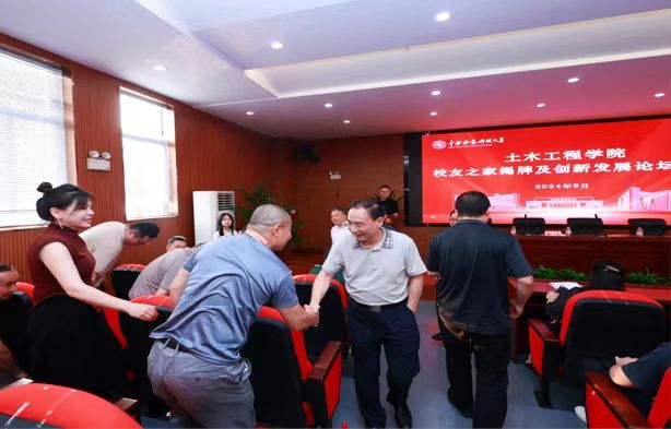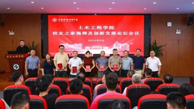 9月29日下午4:00,中南林业科技大学土木工程学院 “校友之家揭牌及创新发展论坛会议”在土木楼501多功能厅顺利举行。中南林业科技大学副校长尹健、党政办主任易锦、校友联络中心主任张仕吉、土木工程学院党委书记闫昌明、院长王达、副院长孙广臣、唐小弟教授和易文教授等教师代表、优秀校友代表以及学生代表共计160余人参加了活动。会议由学院党委副书记郭屹主持。