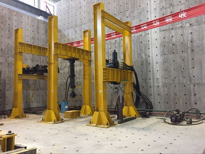 结构实验室建筑面积2339m2,主要设备有:多通道电液伺服结构试验系统、5000KN长柱试验机、2000KN长柱试验机、扭转试验机、电子万能试验机电液伺服疲劳试验机(200KN和100KN)、微机控制电子钢绞线应力松弛试验机、微机控制静载锚固试验机、DH3846和DH5922数据采集仪、穿心式压力传感器、静动态电阻应变仪、非金属超声波测试仪、钢筋笼长度测试仪、裂缝(宽度/深度)综合测试仪、数显混凝土回弹仪、钢筋定位仪液压式千斤顶、示波器、拾震器、测振放大器、压电式加速度计、电荷放大器和信号放大器若干。本实验室主要承担工程结构综合试验、建筑工程测试技术等土木工程专业相关教学和科研任务。