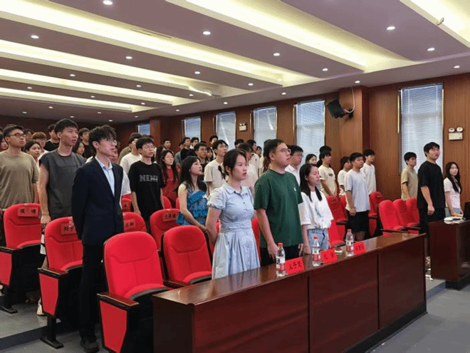 大会在庄严的国歌声中正式开始。全体师生肃立齐唱,展现了土木学子昂扬向上的精神风貌。