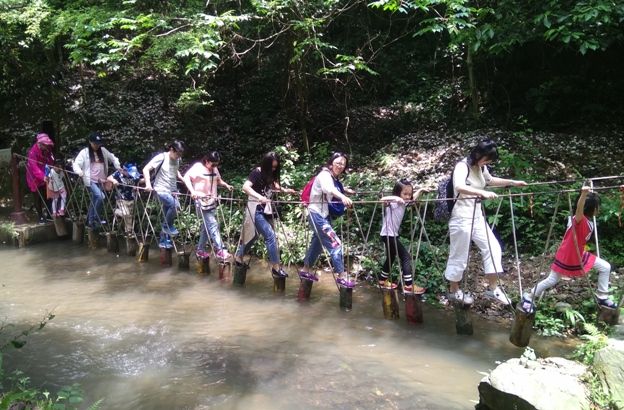 经过院分工会的前期筹备、协调安排,原定于庆祝“三·八”国际劳动妇女节的踏青活动因天气、会议安排等种种原因推迟到5月份的母亲节终于成行。早上9点老师们在韶山南路校门口集合出发,前往浏阳美丽乡村-幸福屋场古港人家参观稻草艺术,感受农民手编工艺的巧夺天工,后乘车赴皇龙大峡谷,先后进行了踩“浮动梅花桩”,过“双龙潭”,勇渡“铁索桥”、爬“壁虎网”、“滚木桥”、“云梯”等近 20 个拓展项目。峡谷内古藤老树、奇山怪石、鸟语花香,泉水清澈无污,瀑布欢腾飞溅,置身其中犹如进入绿色乐园,大家充分感受了“欢乐向前冲”的欢笑与刺激。