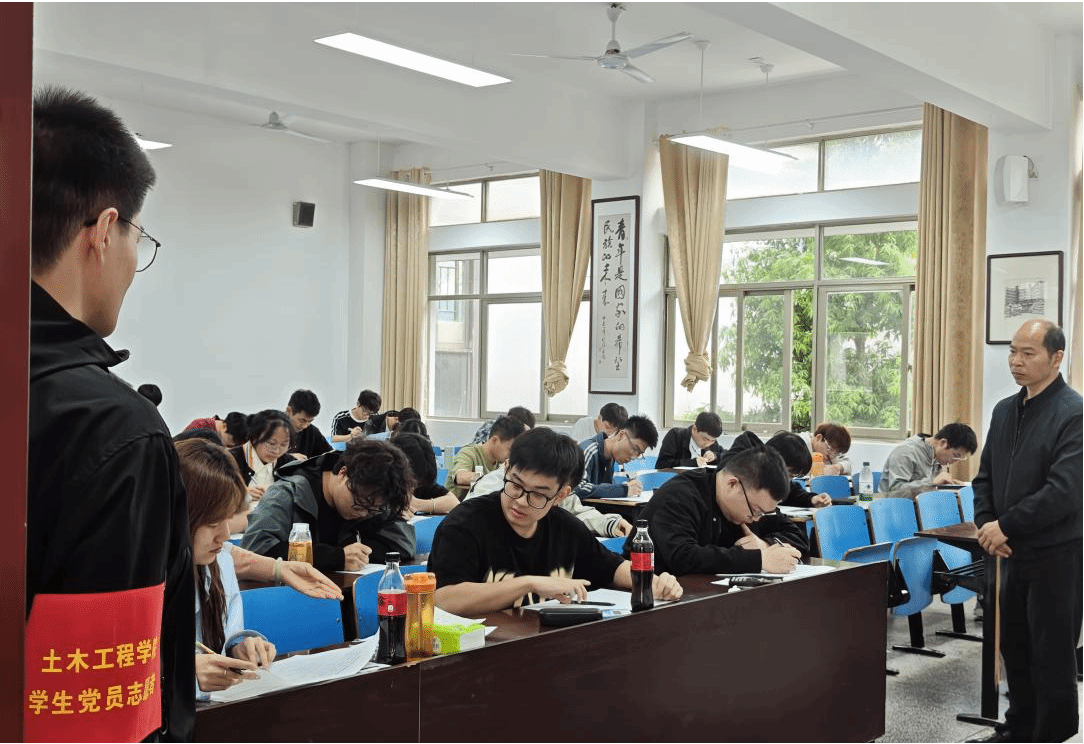 为持续深化考风考纪建设,强化党建引领育人实效,筑牢诚信考试防线,土木工程学院党委于2025年春季学期期中考试期间,组织开展了“党员先锋领航,护航考场秩序”学生党员志愿监考活动。